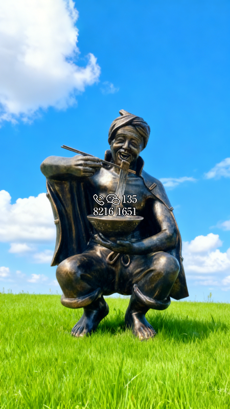 蹲著吃面的陜北大爺雕塑